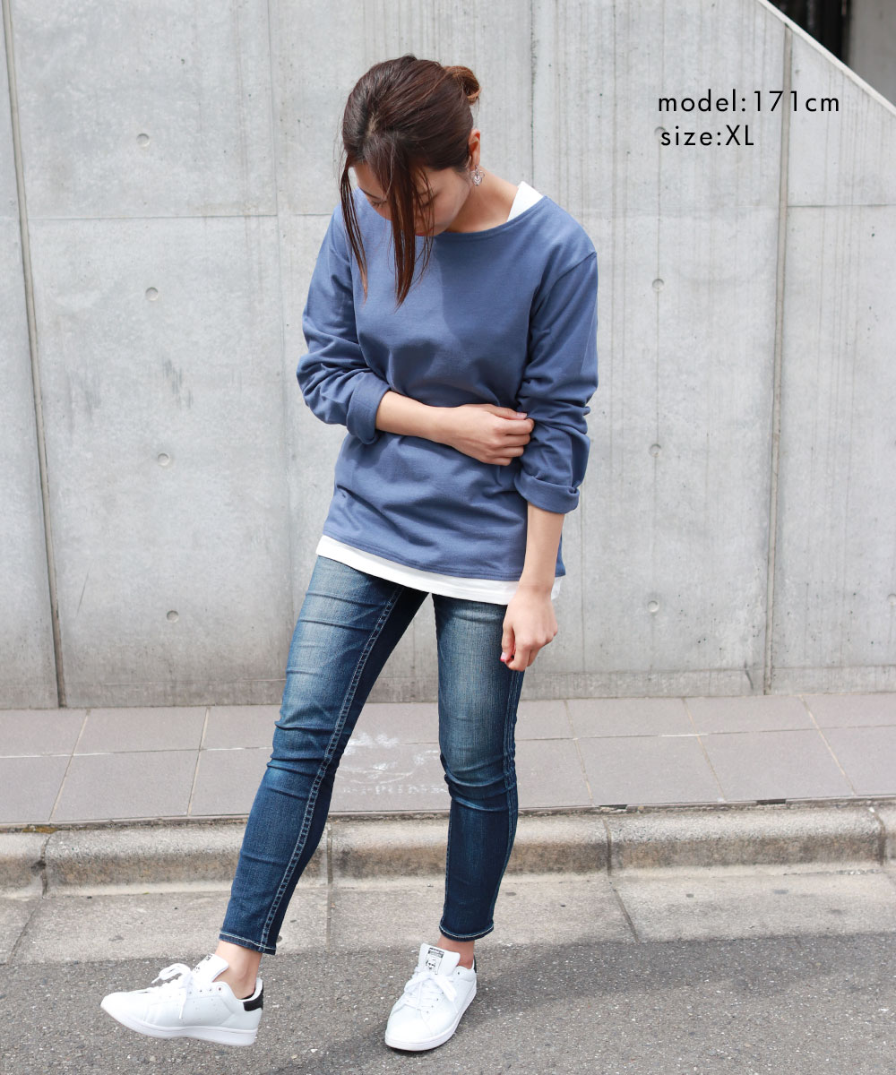 首元と裾が重ね着風のデザインになっているので、 この1枚を着るだけで、迷わずおしゃれなコーディネートが完成。