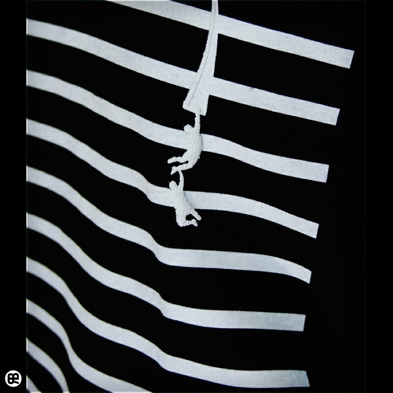 ■■■ デザイナーからのメッセージ ■■■ ボーダーのTシャツは いかがですか? 線が1本だけめくれてない? ハイ、いたずら好きな2人が 遊んでいるだけさ。